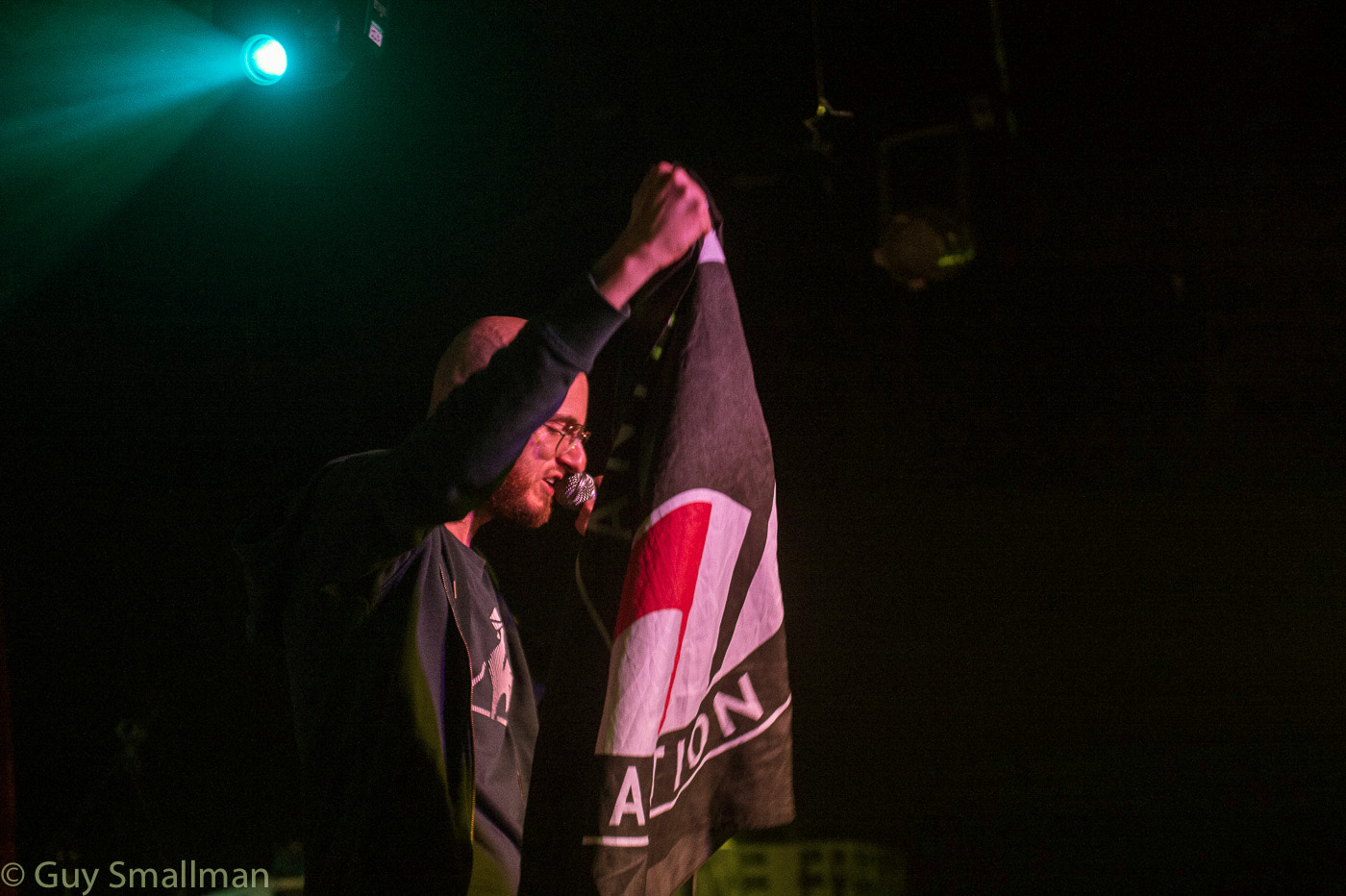 Next up with barely a pause for breath comes Italian rapper Signor K. He is undoubtedly the most overtly political artist onstage tonight. Every number in his set is a call to arms of some description from the opening chimes of ‘All get out’ to the closing mayhem of ‘Jackanapes’ his conviction is relentless. Other highlights of his set include ‘DALLA PARTE DEL DIRITTO ALL’ABITARE’ (roughly translated as ‘On the side of housing rights) an angry diatribe about the lack of affordable housing in his native Milan and the brutal response from the state to the crisis. ‘VIVA PALESTINA’ goes down an absolute storm and requires little explanation. But perhaps his most fitting tune for this event is ‘CHIEDILO ALLA LIBERTÀ’ (Ask for Freedom) which pays homage to the Italian partisans of World War Two whose heroic resistance to Mussolini continues to inspire all those who believe in resistance to this day.