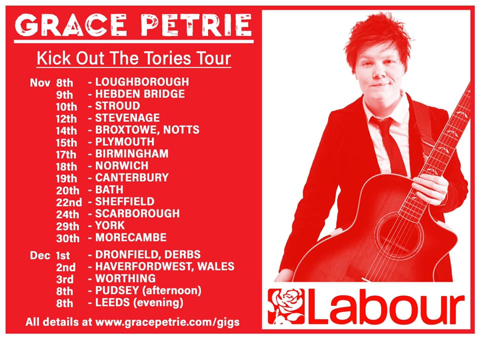 Grace petrie has announced a string of dates at Labour party events and fundraisers in the run up to the general election. The tour which has been organised at incredibly short notice hits was announced this evening with the full details on her website. Tickets are presently available for some of the dates through the usual channels.