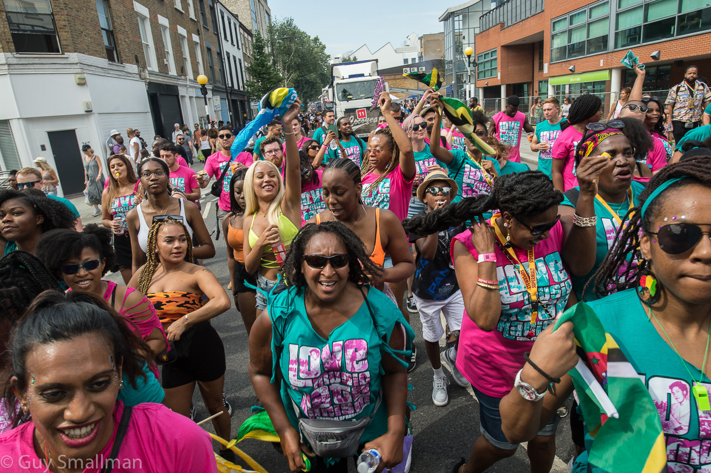 Europe’s biggest street party got a welcome injection of politics and defiance from Love Music Hate Racism for the third year running as their float took to the streets of Notting Hill with a massive sound system and around two hundred followers. The music was provided by veteran Carnival legends the Smokey Joe Roadshow who kept the political message at the forefront of the festivities from beginning to end, along with keeping absolutely everyone dancing. DJ Smokey Joe said: “Since teaming up with Love Music Hate Racism, I’ve decided that I’m going to do carnival with a purpose. We’re not going out on the road to do protests like you would on a march, we’re going out there and still having fun. But just the mere presence of LMHR on the road – just with the banners and the t-shirts – says it all.”